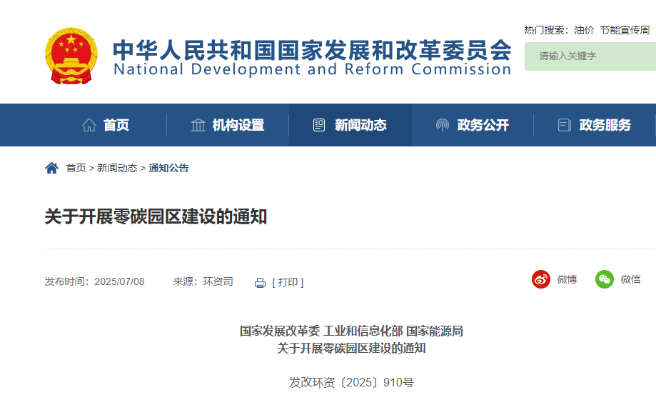 國(guó)家發(fā)展改革委 工業(yè)和信息化部 國(guó)家能源局印發(fā)《關(guān)于開(kāi)展零碳園區(qū)建設(shè)的通知》 2025-07-08